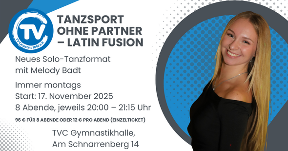 Gerne weisen wir auch auf den Tag der offenen Tür beim TVC am 22.11.2026 hin. Da können Sie gerne probeweise kostenlos entweder um 15 Uhr oder um 16 Uhr an einem Kurzworkshop „Tanzen ohne Partner“ teilnehmen. Probieren geht über Studieren!